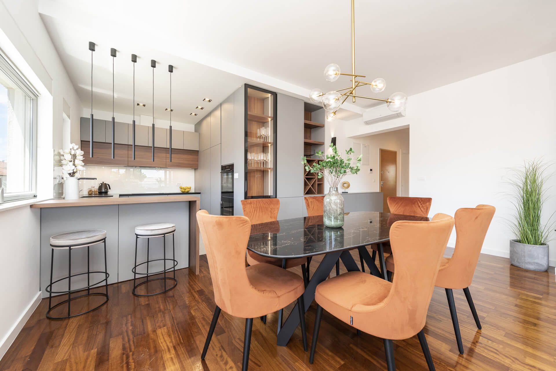 Vlasnici su kupili stan u novogradnji površine 105m2 sa dvije terase te nisu bili u potpunosti zadovoljni svime zatečenim u stanu pa su zatražili djelomičnu adaptaciju stana kao i kompletno uređenje stana. Želja je bila stvoriti impresivan , moderan i luksuzan stan, a istovremeno zadržati toplinu doma.